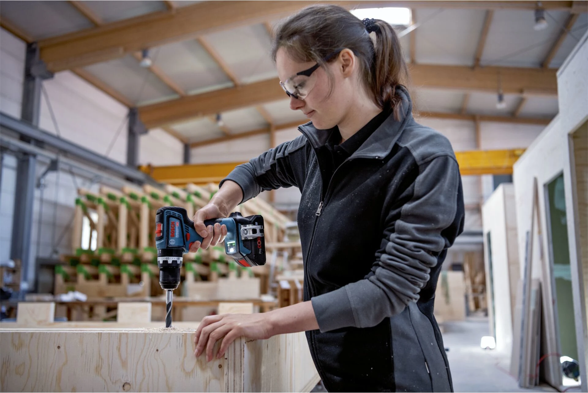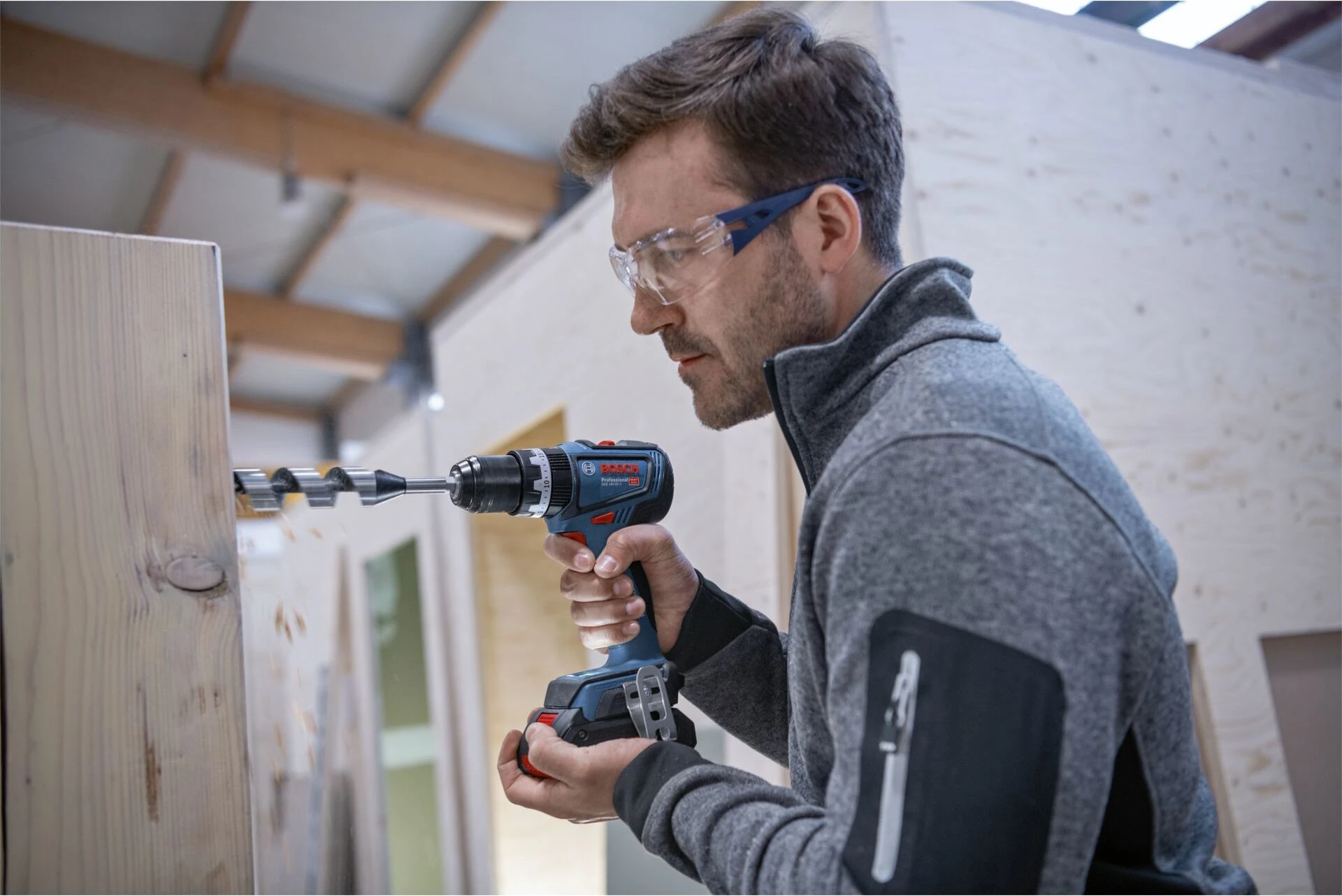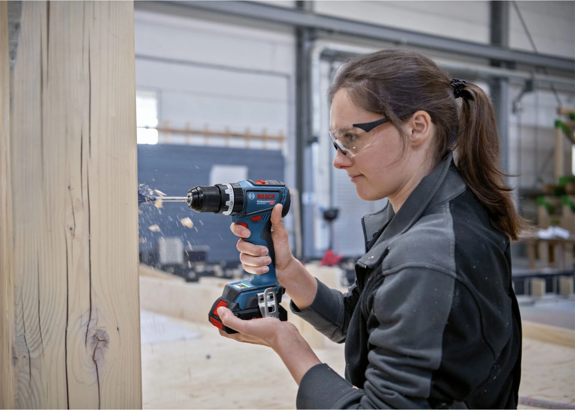 La GSB 18V-90 C Professional est une perceuse à percussion sans fil puissante équipée d’un moteur sans balai qui délivre une puissance maximale de 64 Nm à 2.100 min-¹. Sa longueur de tête compacte de 175 mm assure une maniabilité parfaite. Le mandrin métallique robuste de 13 mm garantit une excellente transmission du couple dans tous les travaux. La perceuse à percussion permet un excellent contrôle de l’outil pour une meilleure protection de l’utilisateur et de l’outil : l’IHM offre une fonction KickBack Control réglable qui réduit le risque de rebond en cas d’inclinaison de l’outil et de rotation soudaine de l’outil. La fonction d’embrayage de précision réglable empêche le surmenage une fois le couple préréglé atteint, ce qui réduit l’usure de l’embrayage et le bruit.