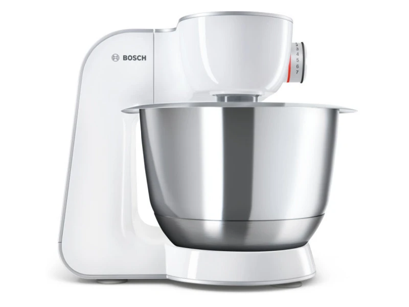 Bosch Robot multifonctions 3.9l 1000w + blender 1.25l + râpes – mum58257 – Robot multifonctions bosch mum58257. La kitchen machine puissante et performante, pour plus de plaisir à cuisiner et réaliser des pâtisseries. Les ingrédients sont parfaitement mélangés grâce au mouvement planétaire 3d. Remise en place automatique du fouet à l’arrière du bol. Doté d’un râpeur / éminceur avec 3 disques réversibles : à râper fin et épais, à émincer fin et épais, à râper/concasser moyen. – type de produit : robot multifonction. puissance : 1000 w. nombre de vitesses : 7 + turbo. régulateur intelligent de vitesse de malaxage. mouvement planétaire à 3 dimensions. kit pâtisserie inox (fouet batteur, fouet mélangeur, crochet pétrisseur). bol mélangeur inox de 3,9 l, jusqu´à 2,7 kg de pâte (1 kg de farine + ingrédients). blender plastique de 1,25 l. hachoir à viande. mini-hachoir. bol mélangeur plastique. trousse range-accessoires. toutes les parties plastiques en contact avec les aliments sont garanties sans bisphénol a. remise en place automatique du fouet à l’arrière du bol. couvercle de protection et ouverture de remplissage du bol. démarrage lent pour éviter les éclaboussures. compartiment range-cordon. sécurité anti-surcharge. système de blocage du bol safety lock avec arrêt automatique du moteur. pieds ventouses. tension (v) : 220-240. fréquence (hz) : 50/60. longueur du cordon électrique (cm) : 110,0. type de prise : fiche gardy/k. Sans fil terre. certificats de conformité : ce, eurasian, ukraine, vde. coloris : blanc. dimensions du produit (mm) : 282 x 280 x 271. poids net (kg) : 8,137. …