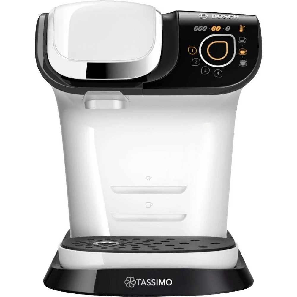 Plus de 40 boissons de grandes marquesUne boisson parfaite: grâce à la technologie unique de reconnaissance du code-barre INTELLIBREW™Toutes les boissons en un seul clicDes arômes parfaits grâce à la technologie de filtration d’eau Brita MaxtraConvient à toutes les tasses avec le support de tasse ajustable en hauteurBosch My Way 2, Cafetière à dosette, Capsule de café, 1300 W, BlancVotre TASSIMO s’adapte à toutes vos tasses et à tous vos mugs.Grâce au support réglable en hauteur et même complètement démontable, l’appareil s’adapte à tous les types de tasses, de verres et de mugs.Votre boisson préférée sur simple pression d’une touche.Préparer des boissons chaudes délicieuses : rien de plus facile ! Votre TASSIMO vous simplifie la vie et vous permet de préparer aisément toutes sortes de boissons savoureuses. Il vous suffit d’insérer un T DISC et d’activer la machine sur simple pression d’une touche. La préparation est ensuite entièrement automatique. Vous n’avez plus qu’à savourer les boissons TASSIMO et croquer la vie à pleines dents !Le système de filtration d’eau BRITA MAXTRA présente de nombreux avantages pour votre TASSIMO.Le réservoir d’eau de votre TASSIMO est doté d’un système de filtration d’eau BRITA MAXTRA. Ce système réduit au maximum le taux de calcaire et de chlore, garantissant un arôme et une saveur plus intenses à chacune de vos boissons. La filtration prolonge en outre la durée de vie de votre machine. Un indicateur électronique vous indique lorsque le filtre doit être remplacé.Dégustez une boisson parfaite avec INTELLIBREW.Grâce à la technologie de reconnaissance du code-barres INTELLIBREW™, TASSIMO prépare à la perfection toutes les boissons avec la bonne quantité d’eau, la bonne température et le bon temps d’infusion.Toutes vos boissons et marques préférées.Expresso, café crème, café filtre, latte macchiato, cappuccino, chocolat chaud ou thé : TASSIMO propose plus de 40* boissons de grandes marques. Avec TASSIMO, vous pouvez savourer toutes sortes de délicieuses boissons chaudes. Il y en a pour tous les goûts ! …